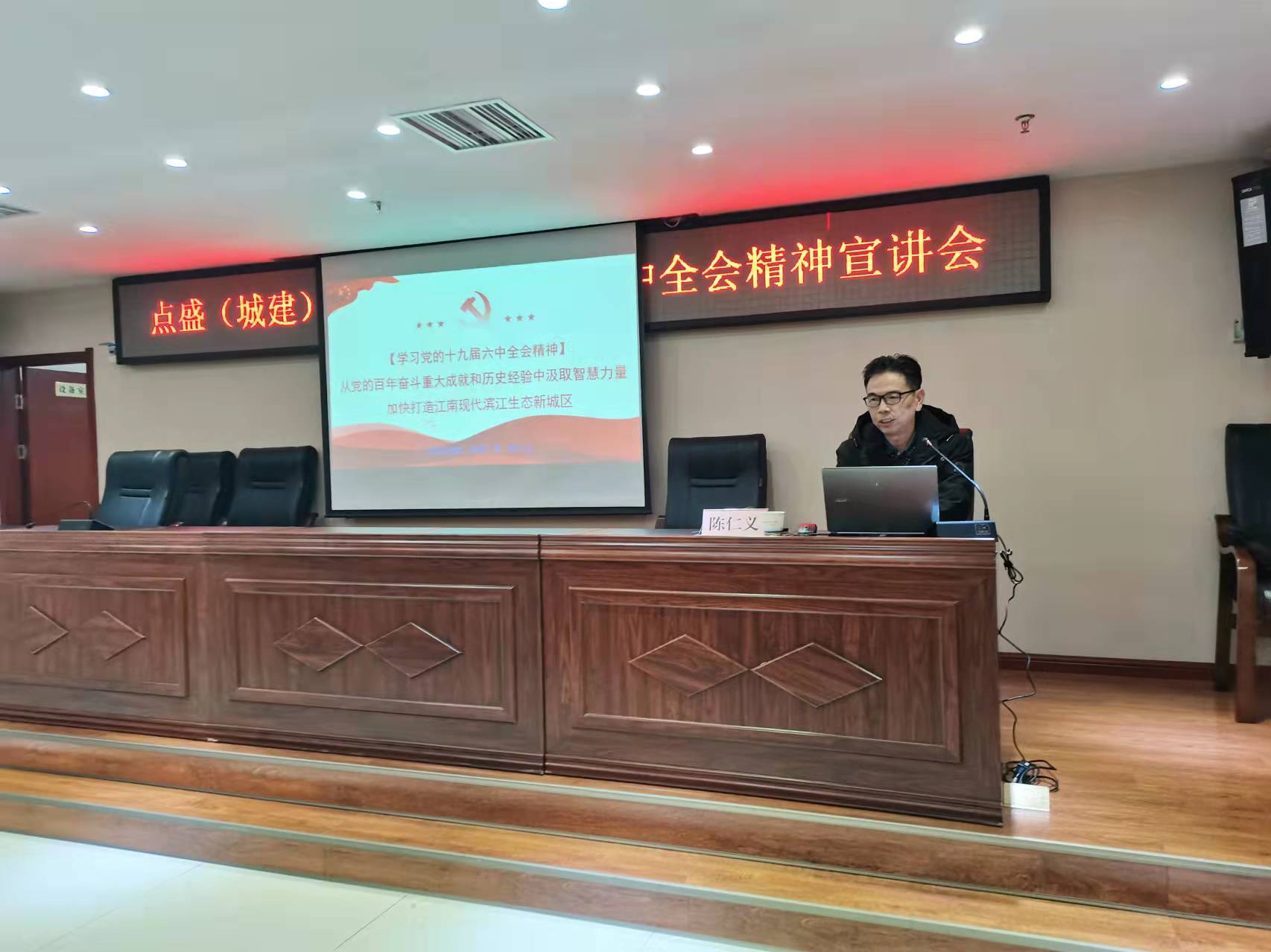 (通訊員:胡瑞文、嚴(yán)薇)為深入學(xué)習(xí)貫徹黨的十九屆六中全會精神,12月30日,區(qū)委宣講團成員陳仁義為點盛(城建)公司全體職工進行黨的十九屆六中全會精神宣講。