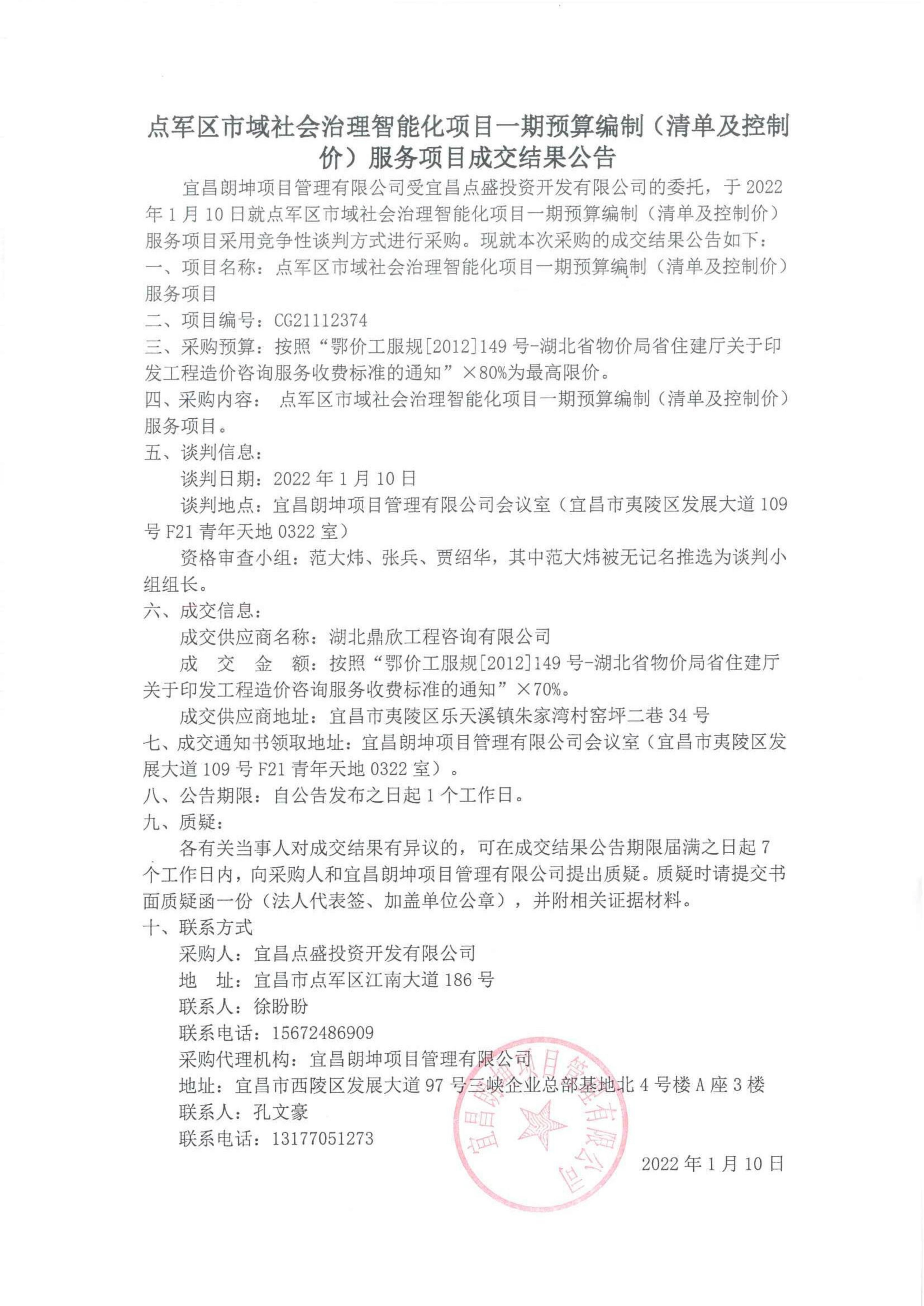 點(diǎn)軍區(qū)市域社會治理智能化項目一期預(yù)算編制(清單及控制價)服務(wù)項目成交結(jié)果公告