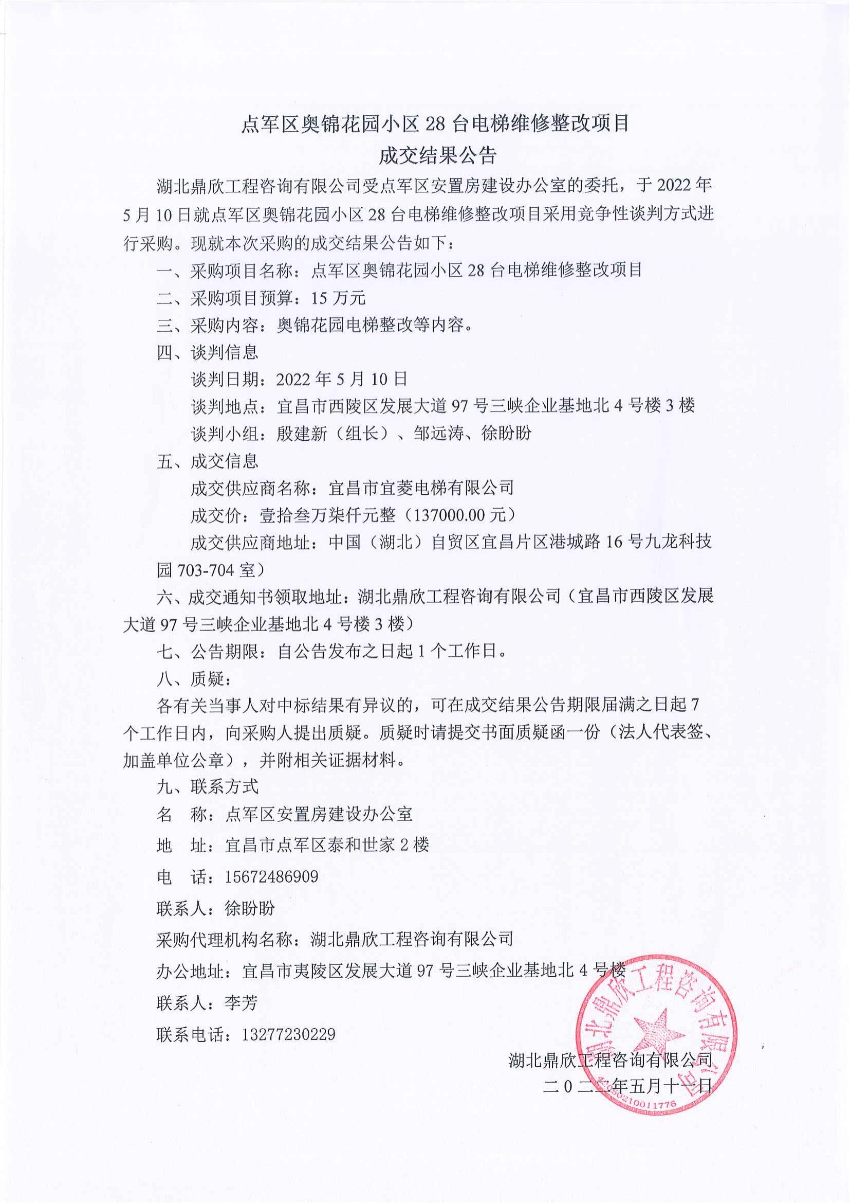 點(diǎn)軍區(qū)奧錦花園小區(qū)28臺電梯維修整改項(xiàng)目成交公告