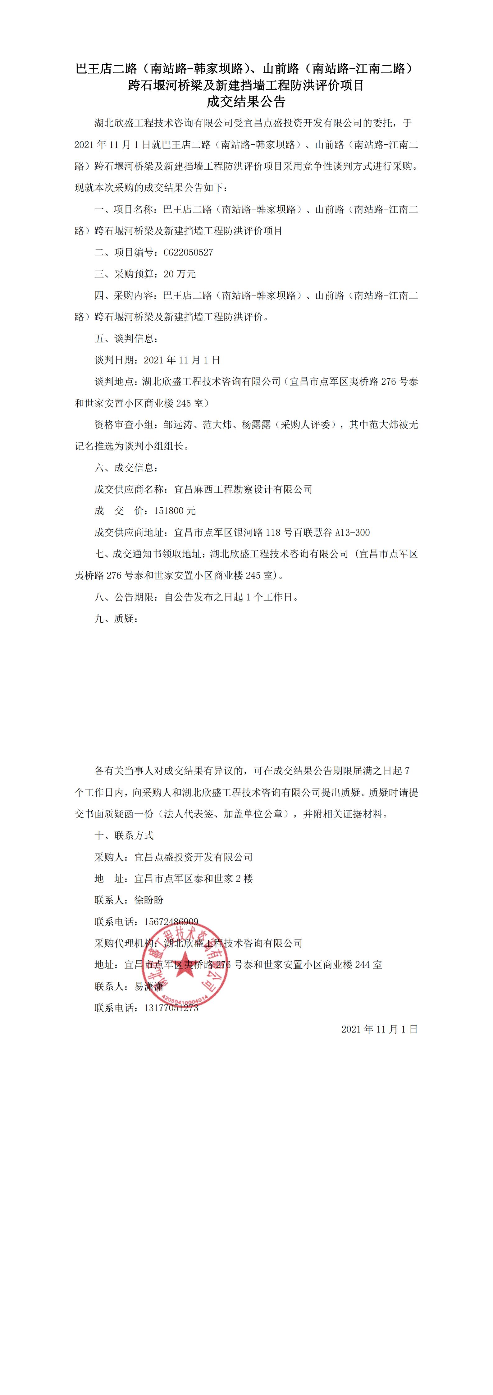 巴王店二路(南站路-韓家壩路)、山前路(南站路-江南二路)跨石堰河橋梁及新建擋墻工程防洪評價項目成交公告