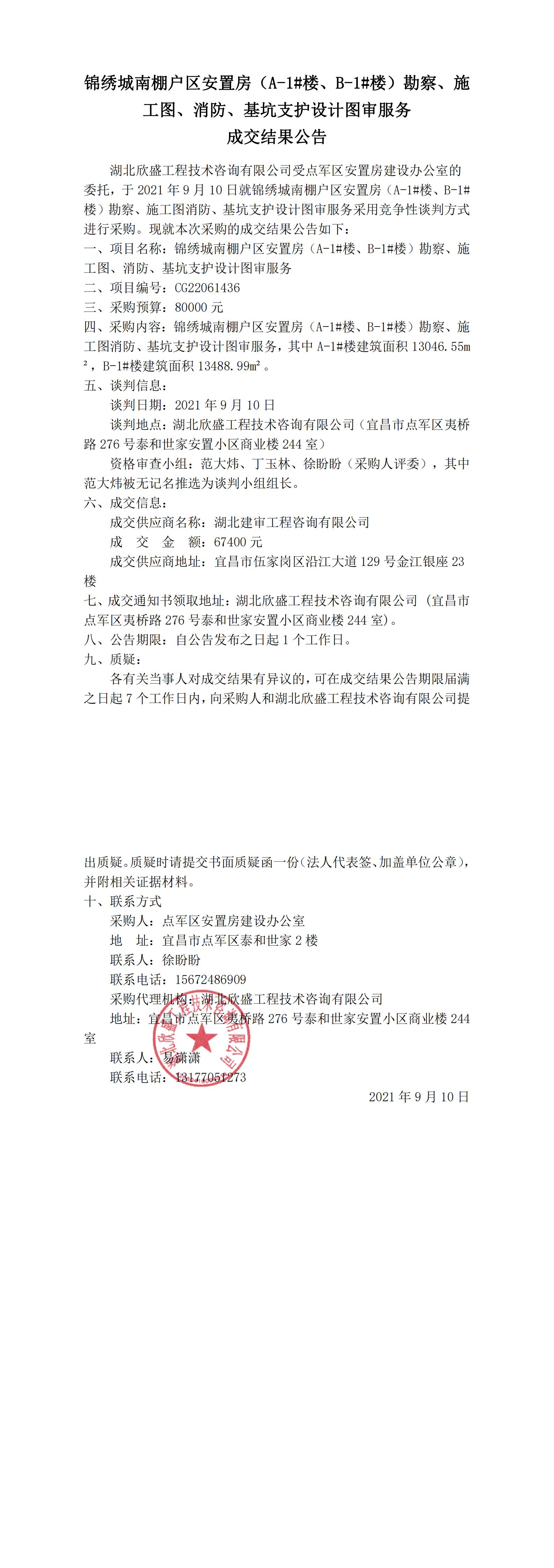 錦繡城南棚戶區(qū)安置房(A-1#樓、B-1#樓)勘察、施工圖、消防、基坑支護設計圖審服務成交結果公告