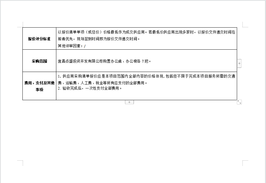 宜昌點(diǎn)盛投資開(kāi)發(fā)有限公司2024年第二季度辦公桌椅采購(gòu)項(xiàng)目 詢價(jià)公告
