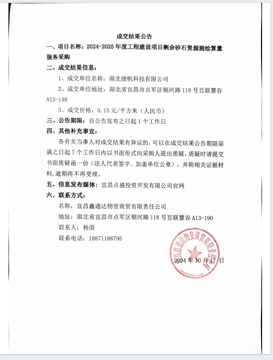 2024-2025年度工程建設(shè)項(xiàng)目剩余砂石資源測(cè)繪算量服務(wù)采購(gòu)成交公告