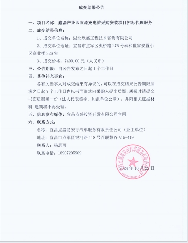 鑫磊產(chǎn)業(yè)園直流充電樁采購安裝項目招標代理服務成交公告
