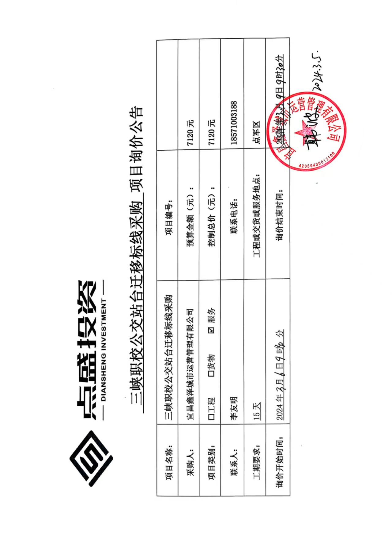 三峽職校公交站臺(tái)遷移標(biāo)線采購(gòu)詢價(jià)公告