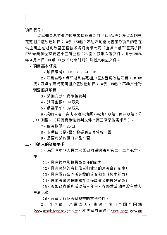 點軍湖景名苑棚戶區(qū)安置房改造項目(1#-8#樓)及點軍陽光花苑棚戶區(qū)改造項目(1#樓-15#樓)不動產(chǎn)地籍調(diào)查服務項目談判公告
